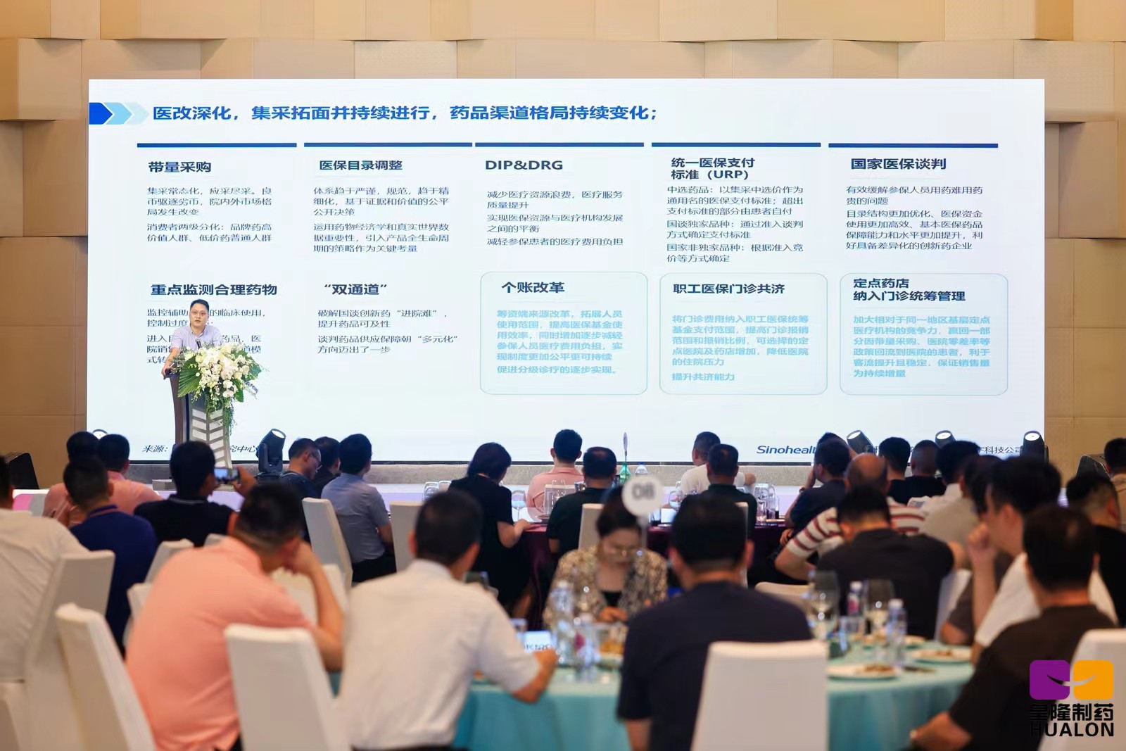 7月13日上午,公司組織全體客戶和省區經理召開產品推介及銷售政策解讀會議,皇隆制藥董事長陳益智、副總經理陳峙托、產品經理魏小杰分別做主題報告,他們分別就公司產品的優勢特點、集采產品的運營及實操、產品政策及市場前景深入剖析,為客戶展現了清晰的合作發展藍圖。會議由皇隆制藥總經理助理方海霞主持。