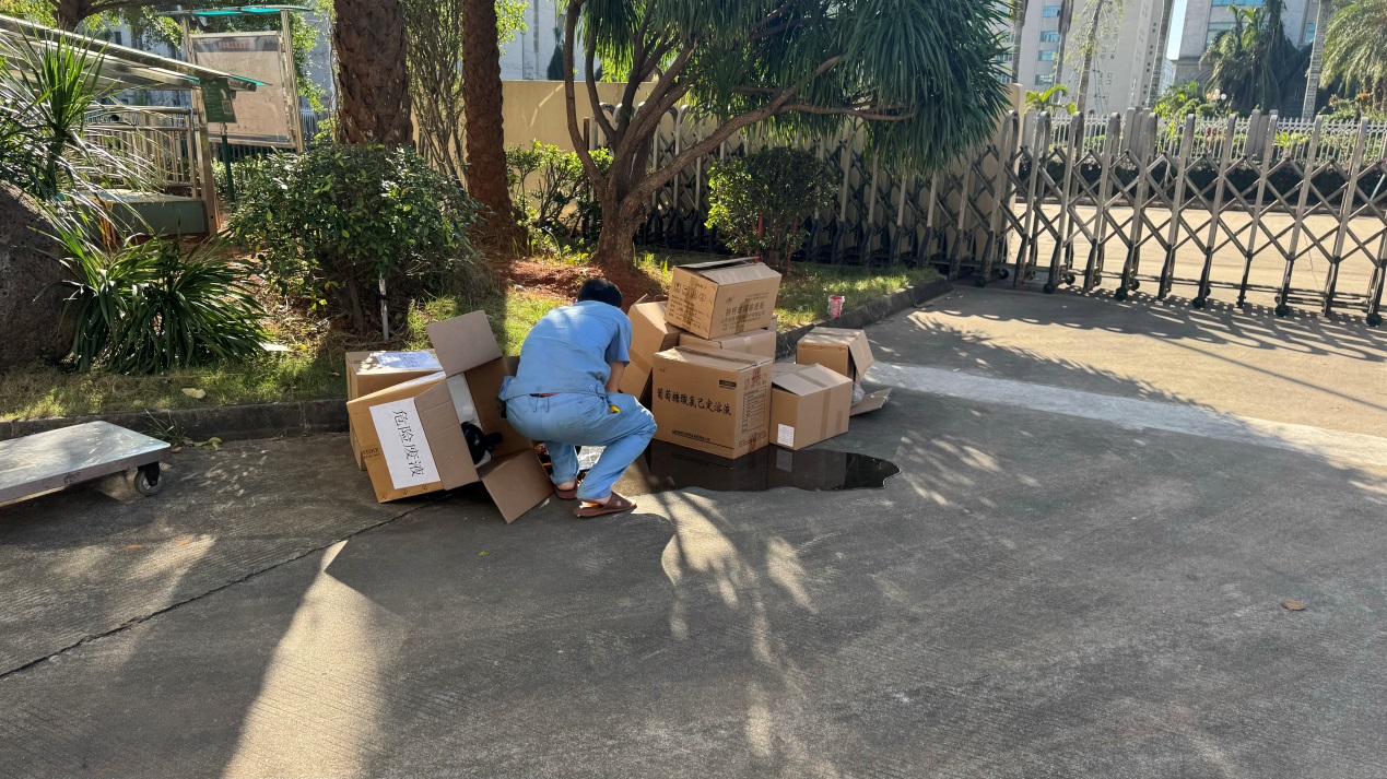 碰倒的危險廢液引發自燃