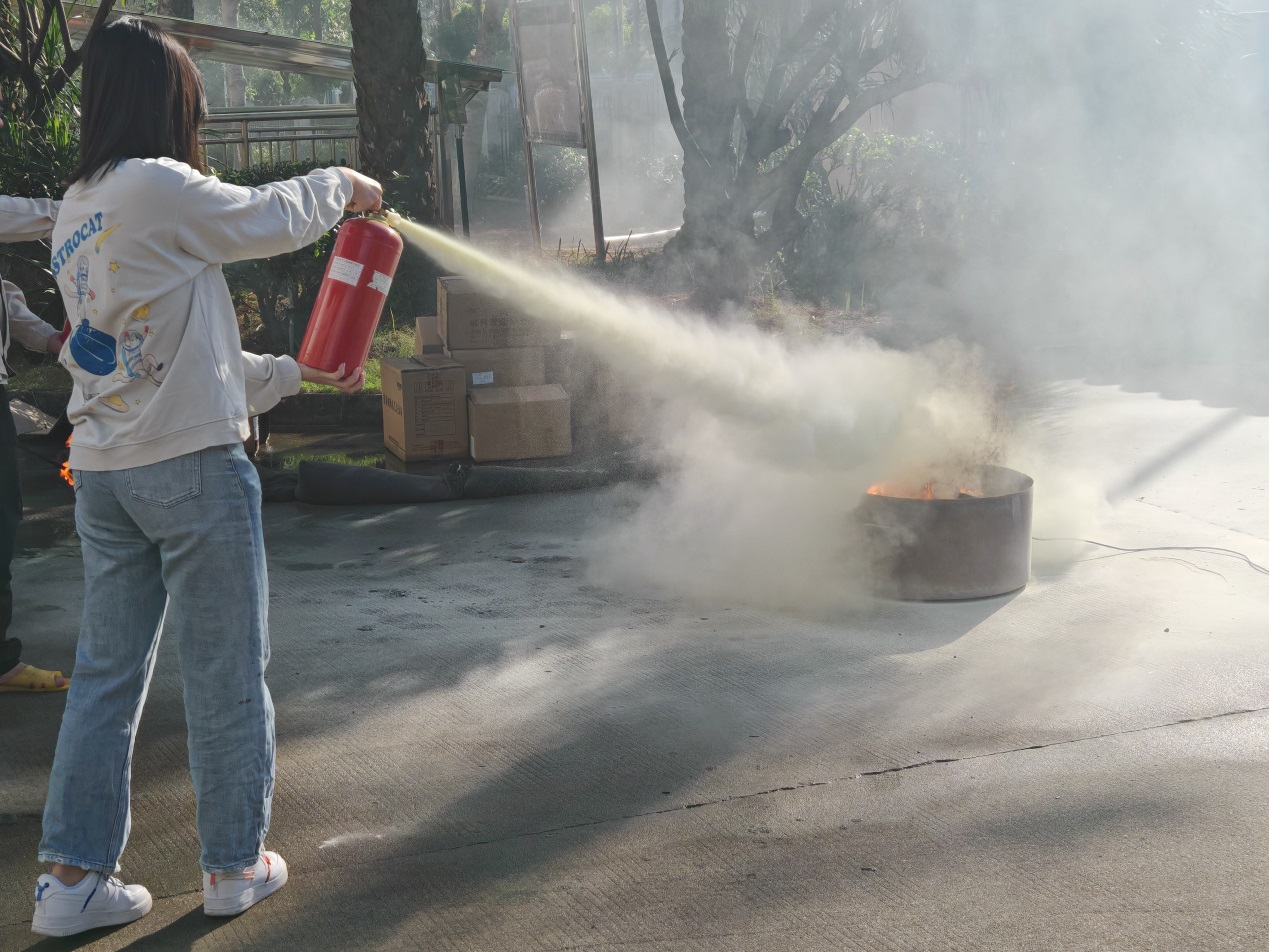 員工使用滅火器撲滅著火點
